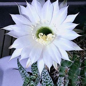 もう5年以上前から我が家にいた王冠短毛丸のお花が初めて咲きました。 花芽がついたと思ったらぐんぐん伸びて、深夜0時にはまだ開いておらず、深夜1時に開花。 1枚目の朝6時が一番開いていました。 昼11時にはもうほとんど閉じていました。 蕾も凛としていて、咲いた純白のお花は本当に美しい。 ホームセンターで買った安物なので、高価な王冠短毛丸ではなく大豪丸だという説もあるけど、一応タグは王冠短毛丸でした。もし見分けがつく方いたら教えてください。