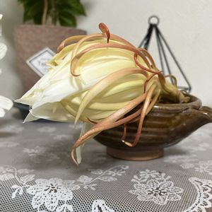 4個月下美人咲きました 一夜限りの花良い香りがしました 朝には萎んでいる😅ので取って 冷蔵庫に👍夜に酢の物にしていただきます