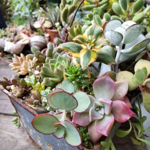 モッコウバラの花も終わり、多肉を寄せて、華やかにしてみました🎶 グリーンに色が入ると映えるかな✨