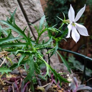 今日のお花 イソトマ🌿 昨年の迎えて、そのまま1輪だけ咲いてます🌿 ルビネに乗っ取られそう!💜