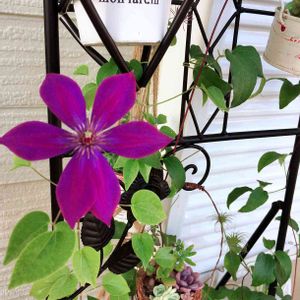 玄関の前 クレマチスが来年にはどうなってるのだろうか? 育てるの初めてだからわからない。ツルの伸び方早いですね。白い花は、まだまだ続きそうです。 青い花は、五月で咲き終わりました。涼しく感じるお花ですね〜💜