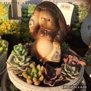 こんばんは😊 旦那が、無理やり押し付けてきました…… 可愛いの見つけたからさぁ、 多肉とコラボしなよぉーって…😑 ム、ムズい……(;´-`)ウーン 力わざで…… (๑・㉨・๑)ポンポンたぬきだポン!! なんの意味もないです……(๑ ́ᄇ`๑)