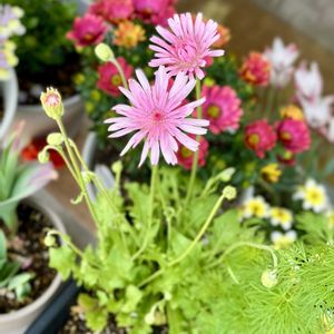 我が家の 桃色タンポポ いっぱい間引きしたけど足りなかったみたいで花が小さいです😆