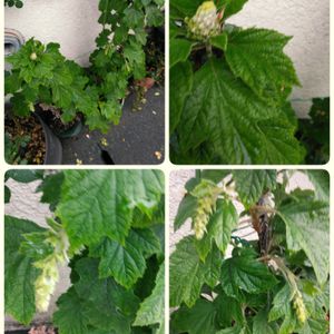 おととしいただき好きな柏葉あじさい 去年は 花芽なく立派な葉がたくさんで いっさい切らずに 今年は 枝は二本で野性的 でも 花芽がそれぞれの枝に 10個ずつ以上 ( ´∀`)(~▽~@)♪♪♪ けっこう根元の近くにも花芽 どんなん? 咲くのかいな~(*'▽'*)