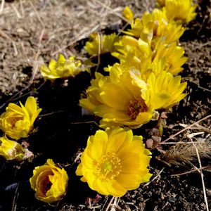 フクジュソウ(福寿草) *キンポウゲ科フクジュソウ属 花期は2〜3月 昨年末に一輪だけ咲き出しましたが、数を増やしています。 まだまだ寒くて、他の草花はまだ動きがありませんが、早くも満開のようです❗️ 花は花弁(萼片が変化)を使って日光を中心に集め その熱で虫を誘引するようですが、こうしてまだ寒い季節の少ない虫を集めて、花粉を運んでもらいます。 多賀城城址公園