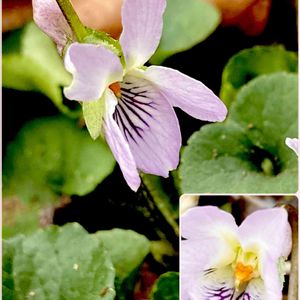 アオイスミレ(葵菫)② *スミレ科スミレ属 花期は3〜4月 (他のスミレに先駆けて早くから咲き出す) 北海道〜九州まで広く分布し人家近くや林縁 林内などに生える。 1.茎、或いは花柄に毛があり葉も有毛。 2.側弁がクシュっと潰れた感じや「前なえ」な感じ! 3.↘️距が真上に向かって伸びる傾向が強い 4.葉は円形で基部は心形、先が尖らない 5.↘️咢片は太く切れ込み丸っこく尖らない 6.花柱の先がカギ状に曲がる 7.側弁基部は無毛、有毛、両方存在する 8.上弁はウサギの耳の様に立ち上がる 今年はアオイスミレの開花が大分遅れました。2月中旬から約一月ほど雨も雪も降らずカラカラの状態だったからかと思います。 3月22日撮影