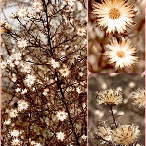 ノコンギク(野紺菊)花後 *キク科シオン属 花期は8〜11月 10/26、11/2に続いてこの秋3度目の投稿です! 今回は、枯れた姿でも大株のまま残っていたのには 少し驚きました。 ↘️冠毛を少しだけ残していましたが、萼片だけになっても、もう一度花を咲かせたかの様な存在感でした。 (昭和時代の古〜い写真のようですね!) 12月21日撮影
