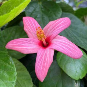 ハイビスカス ボリアヌス、開花中! 花弁がプロペラのように回転し、縦に線が入るハイビスカス!