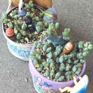 こんにちはヽ(^0^)ノ 無事帰宅…が雨雲の方が早かった ☔️💦⚡️ ゲリラ雷雨により洗濯びちゃびちゃ💦💦💦 もう一度洗濯し直してコインランドリーで乾燥💨 すっかり雨も止んで悔しいぐらいだったのに… また降ってきた☔️💦 隙間天気☀️(?)の間に📷 🏷ペコちゃん祭り& 🏷金曜日の蕾たち 😊参加させていただきます🙋♀️ 宇宙旅行中のペコちゃん&🐕(誰??🤣) これまた、とある組織からの送り付け🤣👍 いつもありがとうございます🙇♀️🍀 送り付け等と言っては、申し訳ない程の愛に溢れた… お宝✨ばかり(💩とか…)🤣🤣🤣🤣🤣🎶 暴れん坊の寄せ植えさん🍀 ⬇️手前に小さな花芽ちゃん🌸見えるかな??👀 寿限無の蕾⚱️💕 先日他の鉢の蕾⚱が咲いたんだけど 可憐なピンクのお花🌸でした。 開花🌸した所も見て頂きたい!! 開いたらまた投稿します📷🎶✨ スポックキュピは、宇宙繋がりということで…🤣🤣🤣
