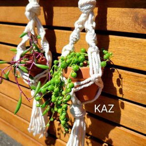 (・ェ・)ノ3cmミニテラコッタ鉢+マクラメ💕 モリモリしてきたネックレス🌱葉挿しトライ...