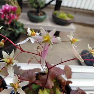 大文字草(紅石水)咲きました。 10月に迎えた株なので、小ぶりな花と葉です。来年は大きくなるでしょうか。