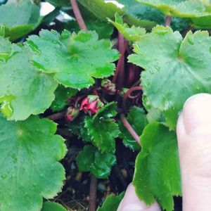 大文字草、紅司。花の芽の成長。ようやく葉の上に出てきました。