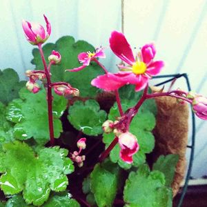大文字草、紅石水。 本日、迎えました。 ホームセンターには、大文字草の小ぶりな開花株が437円で販売されていました。 我が家で2ヶ月前に迎えた株は、同期(ホームセンターにて・笑)の株と比較すると葉も肉厚に多く健やかに成長したようです。