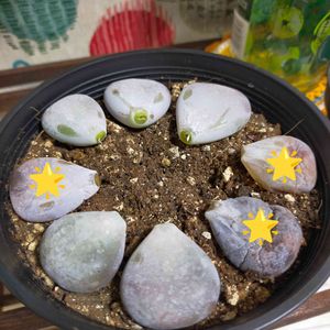 チョロ水栽培が功を奏している様子です。 - ̗̀ ( ˶'ᵕ'˶) ̖́- ペトっとなってた花芽が、ピーンと立ってます。 解体前は、やはり負担がつよすぎていたんでしょうか。 鈴生りの葉肉が可愛く「お見事」で、もぎりに躊躇していました。 しかしこの姿♪ 嬉しい楽しい大好き♥ と、写真撮影は白色灯下で行う方が、植物が健康的に映える…と知りました。 暖色Maxに慣れすぎていて… (,,- -,,)