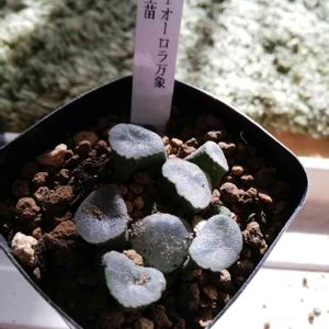 4つ目‼️😁 KIオーロラ万象 実生苗🌱 わーい、万象だ~😆 万象1つ持ってるけど、まだ欲しかったんですよね✨☺️ しかも、オーロラって、ちょっと良い響き🎶 土被っちゃってるので、今度綺麗にしなくっちゃ😆