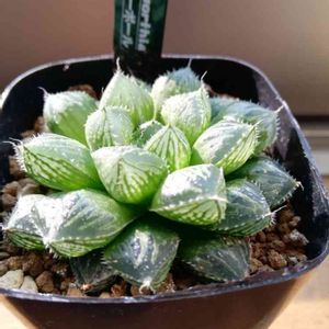 5つ目‼️😁 カクタスニシさんの、ハオルチア福袋最後の1つは、これでした~😆 白銀ピクタ実生選抜 OK白銀ピクタ✨ こっちが、本物のピクタですね🎵 ピクタ、コレクタ、スプレンデンス、コンプト?って名前を徐々に覚えてきて、未だどれも持っていなかったので、この機に、手に入れたいな~と思ってたので、念願叶いました‼️😆✨ これも、土被っちゃってるので、今度綺麗にしなくっちゃ😆✨ 肉厚でぷくぷく✨ 苗も、結構大きくて、良い感じです✨