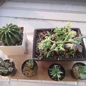 マルシェで、狩ってきました❗ 玉扇とオブツーサ🌵 玉扇は、既に1つ持ってるので、迷ったけど、安かったし、良い形してるし、花芽ぽいのまで付いてるし、我慢できませんでした。😅💦 オブツーサは、もっとちゃんとした名前があるんじゃないかと思いつつも、この形のは、うちにまだ無いような気がして、値段も安かったし。。。😅 万象も、とっても綺麗なのがあったけど、この前買ったばかりだし、値段もそこそこしたので、諦めました😭 アガベも最近気になっていて、あったけど、高かったので、眺めて終わりました😖