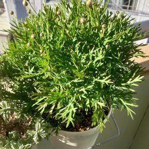 PWマーガレット ホワイトモカ アフロ状態😂ツボミが付いています💕 こちらは挿し芽から。親株は確かもうないですが、繋げる事が出来ています♪