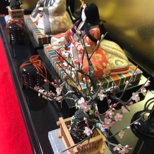 我が家の雛飾りは、桜橘ではなく紅白梅です😊
