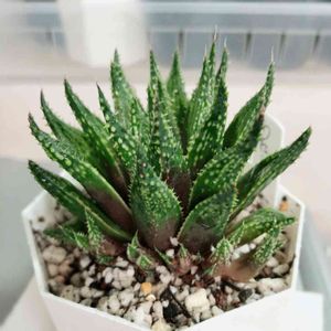 今日はギラギラハオルチアさん(✩´꒳`✩) #雪景色 べヌスタて一緒ぐらい大好きな子です。 テカテカでギラギラで美しい(*•̀ᴗ•́*)و ̑̑