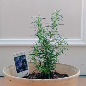 葉っぱ、いい香り 青紫の花が咲くっぽい ローズマリー・セイレム しかし最近は100均の鉢はおしゃれな感じのが多い