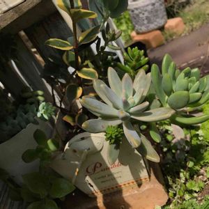 こんにちは(*´∀`*)ノ 今日は涼しいですね! 雨晒し日晒しにしている、七福神達 (*´˘`*)♥ 大きい株からチョンパして挿していた子達なのでまだちょっと小さいです😆💕 このままどんどん大きくなってね〜💕😍
