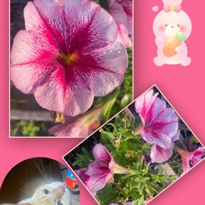 おはようございます。 今日も暑くなりそうですね。 皆さま熱中症に気をつけ良い一日を。 今日のお花は「ペチュニア」とチュール好きなにゃん。
