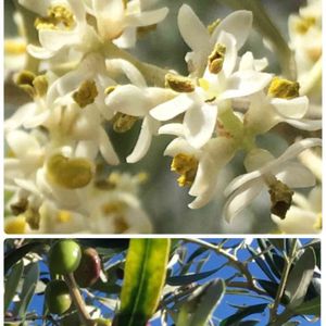 オリーブ 今日のお花のオリーブ🕊 モクセイ科オリーブ属 幸せを呼ぶ木🕊オリーブ🍀 小さな小さな白いお花🕊 オリーブの木の花言葉は「平和」と「知恵」 令和の幕開けにふさわしいお花ですネ💕 2018.5.16 お花 2018.11.1 実 撮影🤳