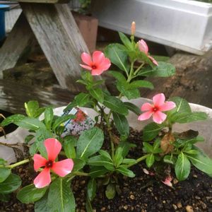 おはようございます。 ニチニチソウの仲間のビンカ 横に這うように伸びます。 特売コーナーで買って‥花が咲きました。 手前の花‥花弁が4枚です。 5枚あるはずの花弁が‥ 花たちにも色々な顔があるものなのですね〜〜 小さな小さな幸せ‥すぐそこにあるかも🍀