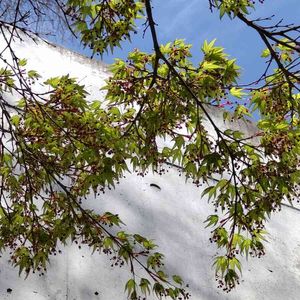 今日の公園のもみじ 昨日はもっと、柔らかそうで、葉も開くかどうか迷ってる感じが好きでした🌿 新芽の美しさは日々変化しています🌿 もしかしたら、夕方の散歩ではまた違った美しさが見られるかもしれませんね🌿