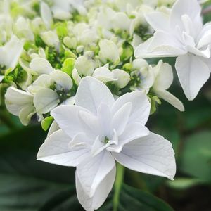 うちに咲く紫陽花はこの3種とアナベルのみ。どんどんサイズアップするので紫陽花売り場にはできるだけ近付かないようにしています🙄💦 旭の舞姫はこれから緑色に変化しながら絞り模様がより鮮明になります。 山アジサイの藍姫は一番に咲き出したのでそろそろ剪定のタイミングかも✁ 空海は北側の庭で地面に直接挿したものも咲いています。 雨続きの日にあって、紫陽花はますます元気ですね😁