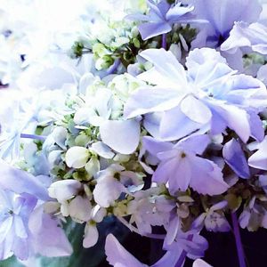 涼を呼ぶ紫陽花の『空海』🌬🎐 四季咲きなので、剪定によって何度も花を咲かせるようです。 ガクアジサイのようでいて、テマリのようでもあり、少しルーズな形は好みが分かれるかも…👀♡ 花かんざしにもできそうな何とも繊細な雰囲気です💙