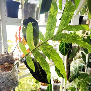 3月24日に福岡蘭展でタイのお店の方から購入の斑入りのドリナリアです🪴 村長が成長遅いよ〜と言われていたので斑入りですし覚悟して育てていました😅 元々の葉は環境が変わるので枯れるだろうなと思っていましたが、葉先は枯れつつ元気に育っています🌿 水苔は湿度を保つのにラップ管理していたのですが、昨日水やりの時にラップを外して見ると下から新芽が出てました🌱 凄く嬉しかったです! 新芽に掛からないように新しいラップを巻き直しました🪴 間延びして、新芽の葉が小さくなり出したボルシギアナをカットしました✂️ 下葉を3枚カットして幹もバッサリカットしたので、親株は幹だけ状態です🪴 切った天芽は水挿し管理です🌿 何だかんだで我が家は水挿しが1番早く根っこが出てくれる気がします🪴 こちらのボルシギアナ毎回とても綺麗な散り斑で、水挿しで開いた新芽もホワイトモンスター並みに綺麗です✨ 最近アロカシアに花芽がよく付きます🌼 今回はスカルプラムに出来ていました! お花を咲かせると体力を使うみたいなのですが、 こちらは1個だけなので咲いたのを見たらカットしようかと思っています✂️