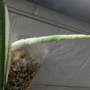 新芽🌱お気に入り😃モンステラホワイトタイガー🐯新芽は真っ白びっくり🫢光合成できるのかな? 斑入りモンステラ(バリエガータ)の主な人気品種をご紹介します。 🌿 白い斑(白斑)が入る系統 この系統は、深い緑と純白のコントラストが非常に美しいのが特徴ですが、白い部分は光合成能力が低いため、通常の緑葉のものよりデリケートな管理が必要です。 • ボルシギアナ・アルボ・バリエガータ(通称:ホワイトタイガー) • 特徴:深い緑の葉に、ペンキを散らしたような純白の斑が不規則に入ります。 • 分類:ボルシギアナ系のため、茎は細く、つる性の性質が強い傾向があります。 • 注意点:斑の入り方が不安定になりやすく、育成難易度はやや高めです。 • デリシオーサ・アルボ • 特徴:デリシオーサ(太い幹、大きな葉)の変異種で、純白の斑が入ります。 • 分類:ボルシギアナ系よりも葉が大きく、より肉厚な傾向があります。 • ホワイトモンスター(テンシンラン) • 特徴:広範囲にわたり白やクリーム色の斑が強く入り、時には葉全体がほぼ真っ白になる部分が現れることもあります。 🌟 黄色・クリーム色の斑(黄斑・散斑)が入る系統 この系統は、黄色やクリーム色の斑が入り、白斑の品種と比べて斑が安定しやすい傾向があります。 • タイコンステレーション(通称:タイコン) • 特徴:葉全体にクリーム色や黄みがかった斑が、まるで星を散りばめたように細かく入ります。 • 流通:タイで組織培養により作出された品種で、斑が安定しているため非常に人気があります。 • 分類:デリシオーサ系の特徴を持つことが多いです。 • デリシオーサ・オーレア(通称:イエローモンスター) • 特徴:鮮やかな黄金色や黄色の斑が、大理石のようなマーブル模様を描き出すのが特徴です。 • イエローマリリン • 特徴:濃い緑の葉に、明るい黄色やクリーム色の不規則な斑が入り、鮮やかなコントラストを楽しめます。 斑入りのモンステラは、どの品種も通常のモンステラよりも葉焼けしやすく、また**暗すぎると斑が消える(先祖返り)**ことがあるため、管理には特に注意が必要です。
