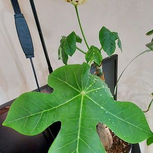珊瑚油桐 ヤトロファボダグリカ ポタグリカ? ホダクリガ?𐤔𐤔 兎にも角にも 葉っぱがドデカすぎて 支柱に括っていても暴れ油桐𐤔𐤔 んでさ、 やっぱり 2枚ほど へしゃってなっちゃったから しょうがない剪定して 猫たちにあげたよ。 遊んでるよ。 楽しそう。 かわいい葉形だね🥰 ②今日の花芽。 あー 待ち遠し🥰🥰🥰🥰