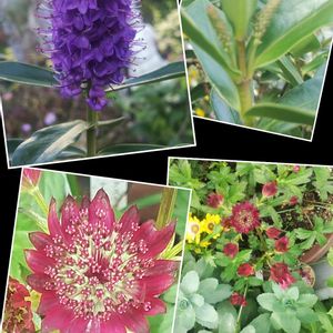 オルレア コボレダネから咲いてきました。 ヘーベ アステリズム ほぼ満開に咲きました。 クレマチス 混み合いながらさいます。 シバザクラ 寄植えの手前に植えてます。