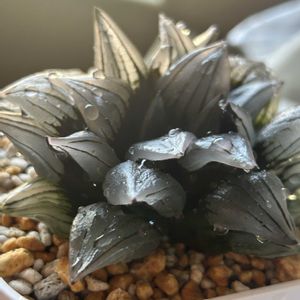 ハオルチア 京の華?だと思われる この子もコンディション悪いので 我が家の特等席へお引越ししました 子株がもっと増えてモリモリ丼に したい🤗🤗