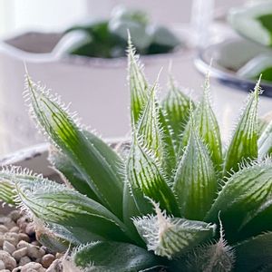 おはようございます 朝からいい天気 コーヒー☕️タイムで目覚まし中⏰ 写真の子は ハオルチア 吉沢コンプトさん🌱 特にスケスケ感があったり 迫力があるわけではありませんが ハオルチアって感じの子です💕 触った感じも硬くもなく プニプニしてるわけでもなく 優しい感じの触りごごちです 落ち着いた感じのハオさんです✌️ そろそろ目が覚めてきたかな🤔 今日もボチボチ多肉活動 開始で〜す🙆♀️