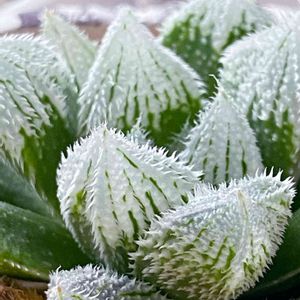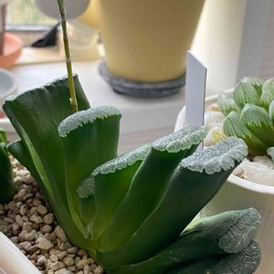 おはようございます しばらくお日様☀️ でないみたいですね〜 写真の子は ハオルチア 白うさぎさん🐰 ケバケバモケモケで可愛い💕 まだ小さいから細いのかな❓ ひょっとして徒長気味❓ まぁ見た目ミドリンだから 元気だよねぇ〜✌️ 「白うさぎ」って 耳が細長いのと モフモフした所からつけたのかな 名前の付け方って微妙ですね😱 今日も一日頑張りま〜す👋