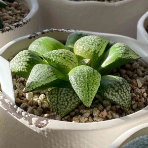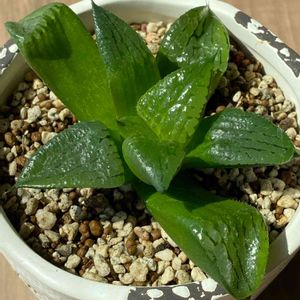 おはよう御座います☀️ 1日終わるのがはやい‼️ あっ❗️というまにすぎてく〜💦 写真の子は ハオルチア 玉扇さん💕 ぎょくせん❓たまおうぎ❓ 2つの名前で呼ばれてますね〜🤔 大きい子 と 小さい子 可愛く並んでいい感じです🙆♀️ 100均で買った横長の鉢も👍 大きい子は札落ちとしてポチッた子 最近窓に白い筋がでてきたんです😁 ひょっとして化けるんですかね〜 楽しみな子です❣️ すこぶるゆるぅ〜り成長の玉扇さん✨ いい感じな2人で〜す👶👧 明日は休み あと1日頑張りま〜す💪