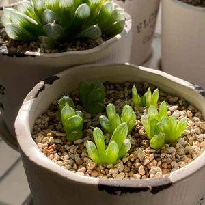 連投で〜す📷 写真の子は ハオルチア 大窓オブツーサ のカキ仔達で〜す✌️ 奥に見えるのが親株です❣️ 履歴を見るとカキ仔達だけにした のが昨年の2月 やく1年2ヶ月 経ちました😁 親株サイズになるには後何年💦 こんな感じで ゆるぅ〜りと 成長するハオさん💕 振り返りの📷はとても大事ですね💕 外作業開始で〜す💪