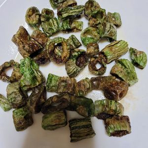 実食!ヘビウリを今研究中😊😊✌ 生でも塩揉みでもOK👌ゴーヤと同じ成分らしいからヘビチップを作ったらゴーヤと一緒美味しい病みつきになるわ😊✌👌最初匂い嫌だったがオツマミならいけるよ