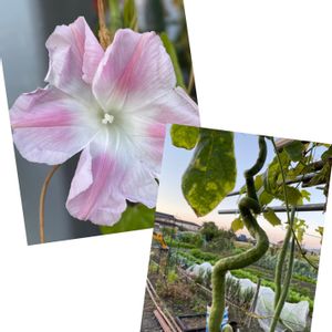 花友さんに頂いたヘビ🐍瓜とローゼルが育ってきました💕ありがとう😊
