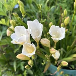 今年は遅いなと思っていたフリージアが咲き始めました。昨年の写真から、10日遅い開花になりました。 昨年秋から、草花を大量に植え付けているのですが、やはりフリージアの花は際立ちます。他の植物と一緒に育てた方が、花の立ち具合も違う感じがします。