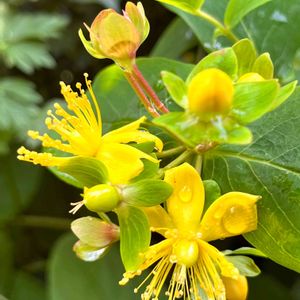 10月23日 今日のお花.。*・゚゚ 🟨ヒペリカム🟨 オトギリソウ科・オトギリソウ(ヒペリカム)属 花から可愛らしい赤い実に🔴なる途中🎵 6月🤳調べたら 「コボウズオトギリ」💠でした😅 花言葉💐 『ときめき』『悲しみは続かない』 🏷️日曜ビタミンカラー♪ 🏷️幸せの黄色いお花 🏷️ビューティフルサンデー