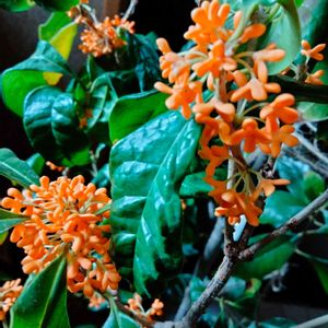金木犀3回目満開🍀 こんな風に分けて咲く花ですか? 9月の2度目の開花から玄関の住人で枝も剪定されたのに又咲きました。 温かくしたのが良かったのかな?