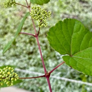 西洋接骨木の花を一つだけ残しておいたんです 毎朝の水撒き、ホースの接続部があまくてすぐ破裂しブシャーと水が自分にもかかりビチャビチャになりながら、実がどんな色に変化するのか見る、楽しい水撒き