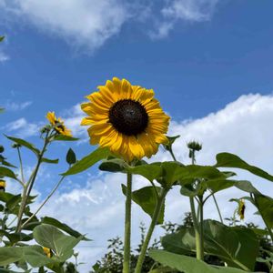 🌱ヒマワリ 久々にお出かけ シフォンケーキ屋さん横の空き地に ヒマワリ畑… 青空に スッ と立つ姿を見て気分爽快でした。🌻🌻
