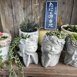 風は冷たいけどいいお天気☀️ 外壁塗装工事中 日当たりの悪かった大鉢 やや徒長気味です まだお披露目してなかった あつさん作のハニワ 「頭にお花でも挿して」との事でしたがウチの庭には花が無い😆 そのままでも可愛いのでお花無しで多肉に埋もれてもらいました 🏷️ハニワの日に参加します