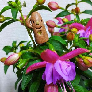 【フクシア 埴輪の日】 お久しぶり ハニワくんです。 フクシアちゃんの上からおはようございます。 もう少ししたら、フクシアちゃんの妖精がたくさん飛ぶ姿が見られると思います。 ゆんさん、外での撮影は寒いからといって、部屋にいるフクシアちゃんとのコラボになりました。 今日を入れて今年もあと4日です。一ヶ月に一回のボクの出番だったけど、今年もありがとう。皆さん一足お先に『よいお年を』 来年28日にまたボクにあってくださいね。 ハニワくんより みちゃさんのハニワの日に参加します